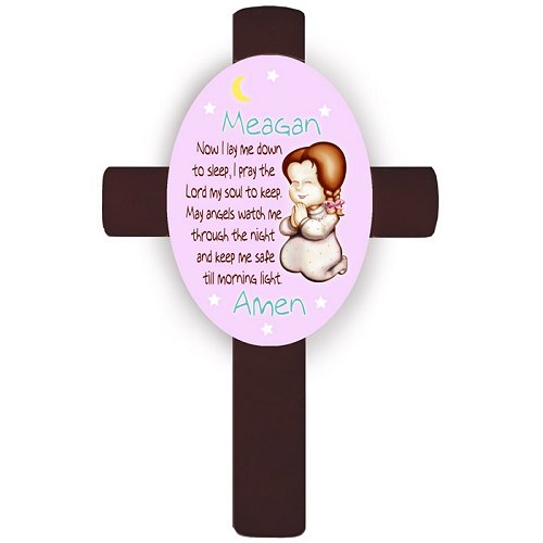 Personalized Girl's Bedtime Prayer Cross - Brunette