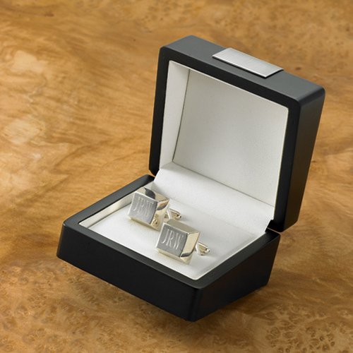 Elegant and sophisticated, these sterling silver-plated cufflinks add a sparkle to any man's formal wardrobe. Arriving in a handsome black box and personalized with the initials of the recipient, these square-shaped cuff links make a great gift for any number of special occasions, including weddings, retirements, birthdays, or as groomsmen gifts. Measures ¾" x 1" x ¾". Personalized with three letters.