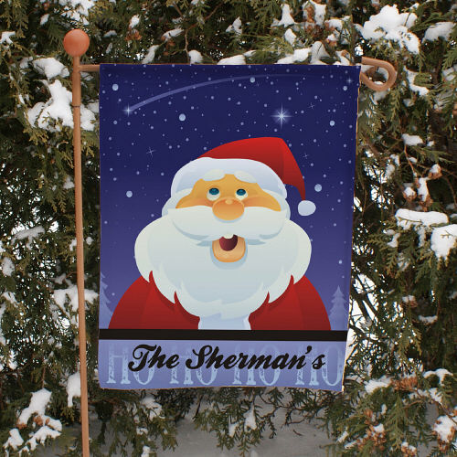 Bring festive spirit to your home this Christmas with our decorative Santa Claus Personalized Christmas Garden Flags. With a cheery Santa saying "Ho Ho Ho", all of your guests will feel the warmth and love as they visit for the holidays. This Custom Christmas Flag accents any home and makes a wonderful gift idea for Christmas. Your Custom Printed Merry Christmas Flag is printed on one side and measures 12½" x 18". Includes FREE Personalization.